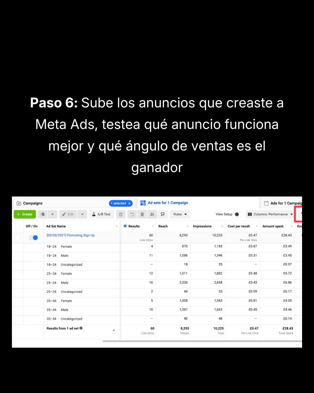 - Tus números reales: gasto, ganancias y audiencias rentables.